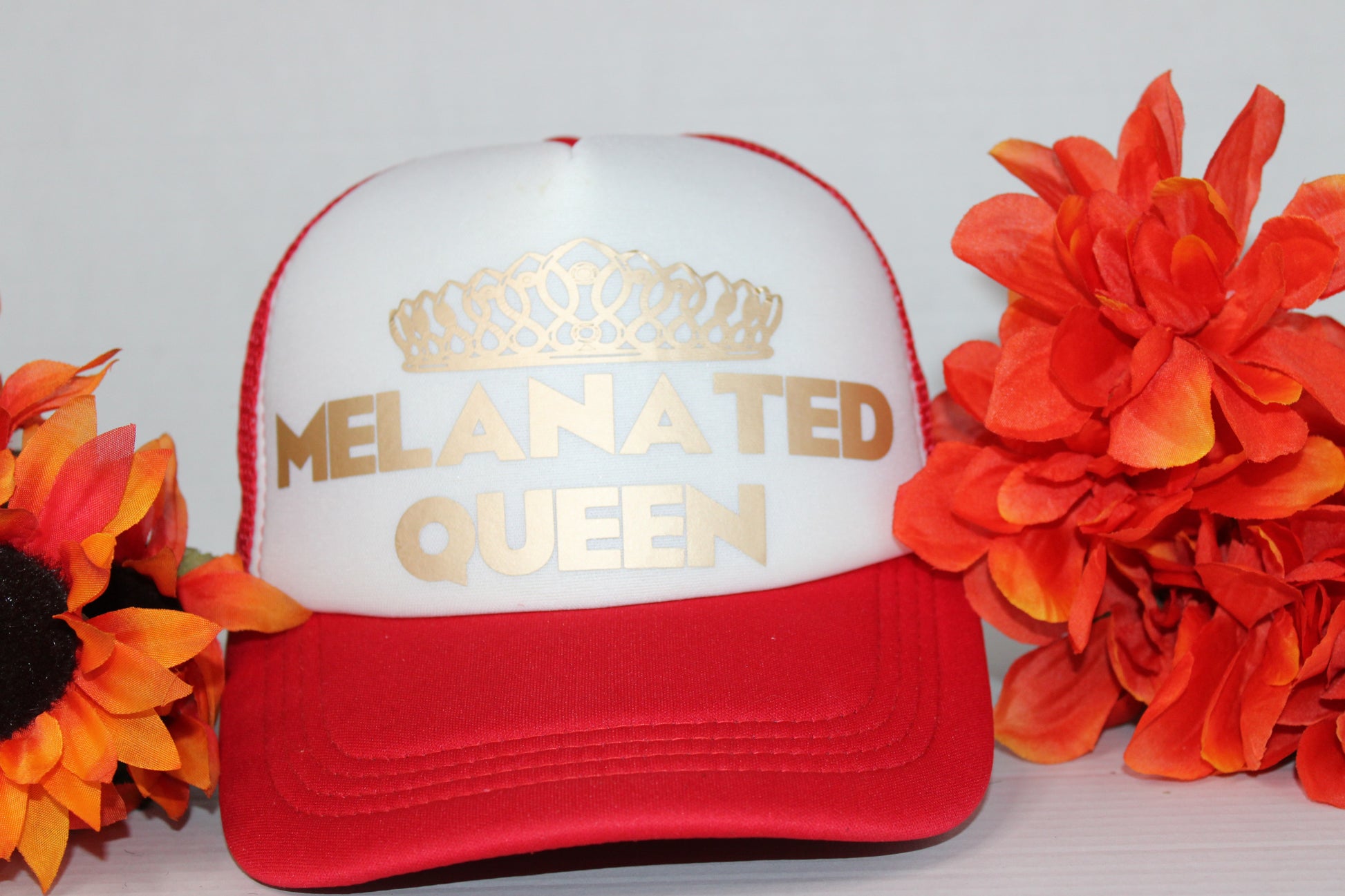 Featuring a sleek design adorned with the phrase "Melanated Queen," this hat is a tribute to the queenship that resides within every melanin-rich individual. Whether you're strolling through the city streets or attending a royal gathering, let this hat be a testament to your regal presence and unwavering confidence.