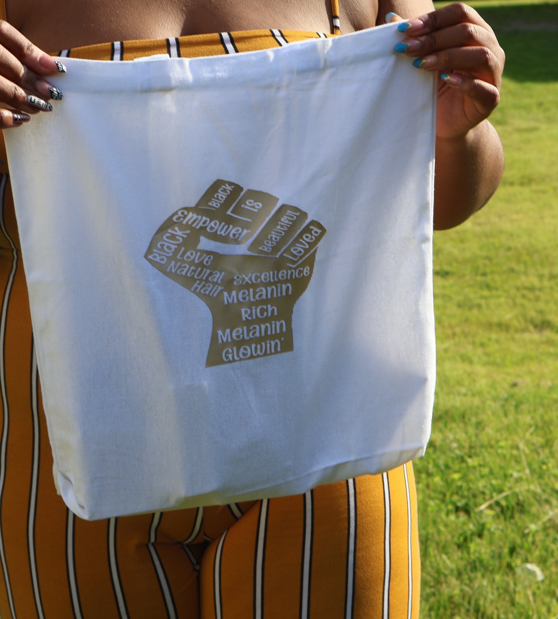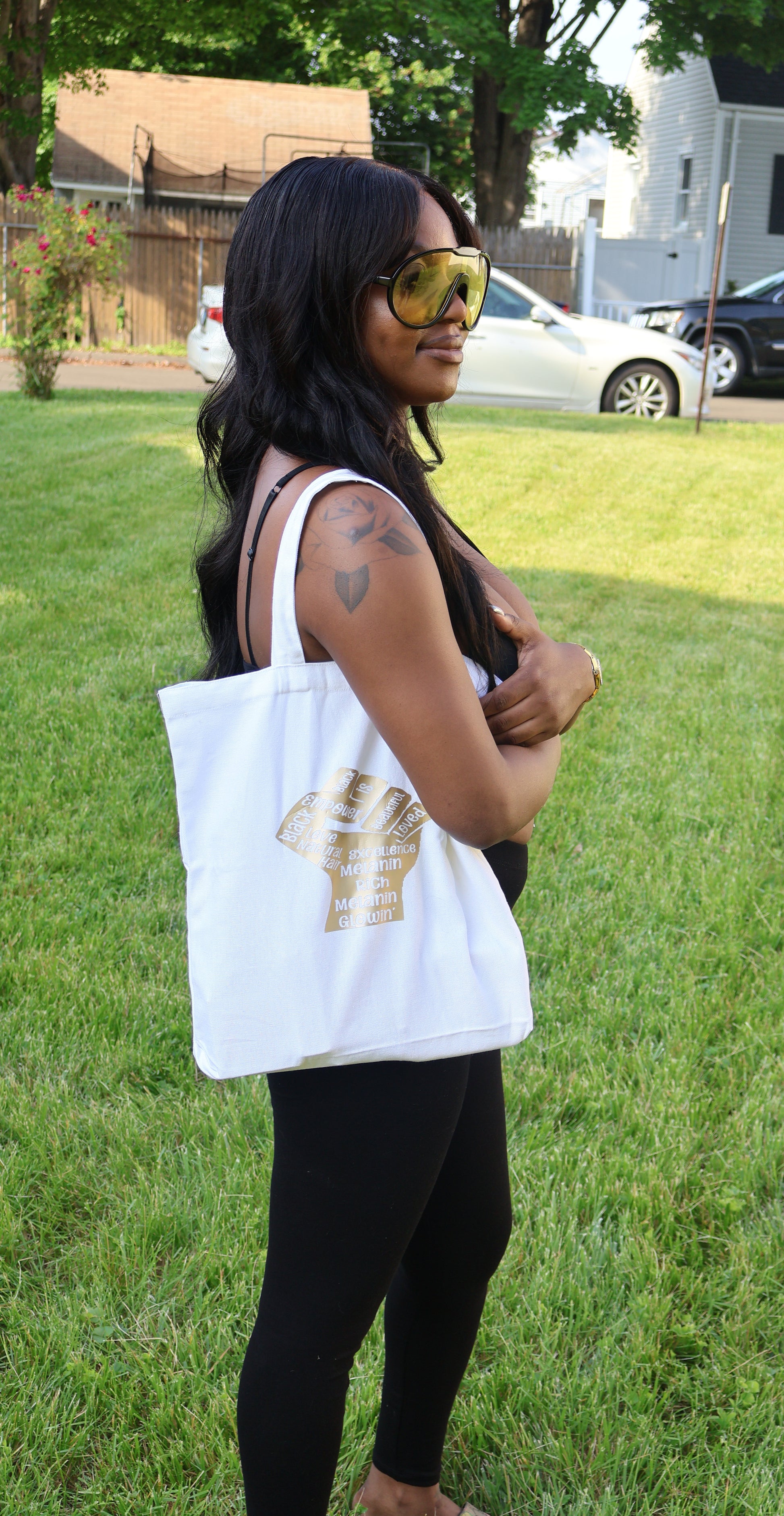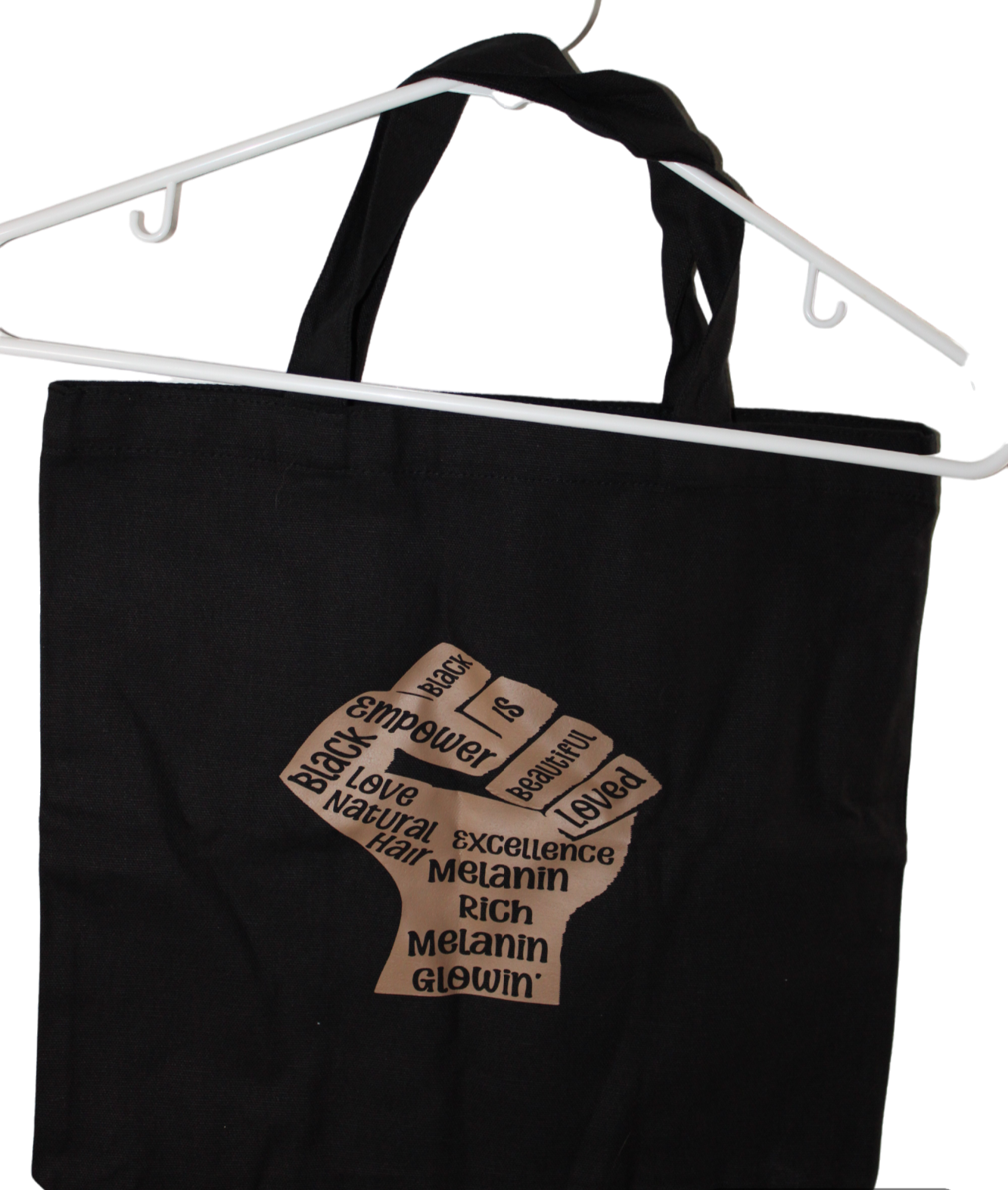 Carry empowerment wherever you go with out "Melanin Affirmations" Tote Bag! Featuring powerful affirmation phases in the shape ofr a raised fist. This tote celebrates strength, beauty, and resilience. Perfect for everyday use, let this bag be your daily reminder of the power within you