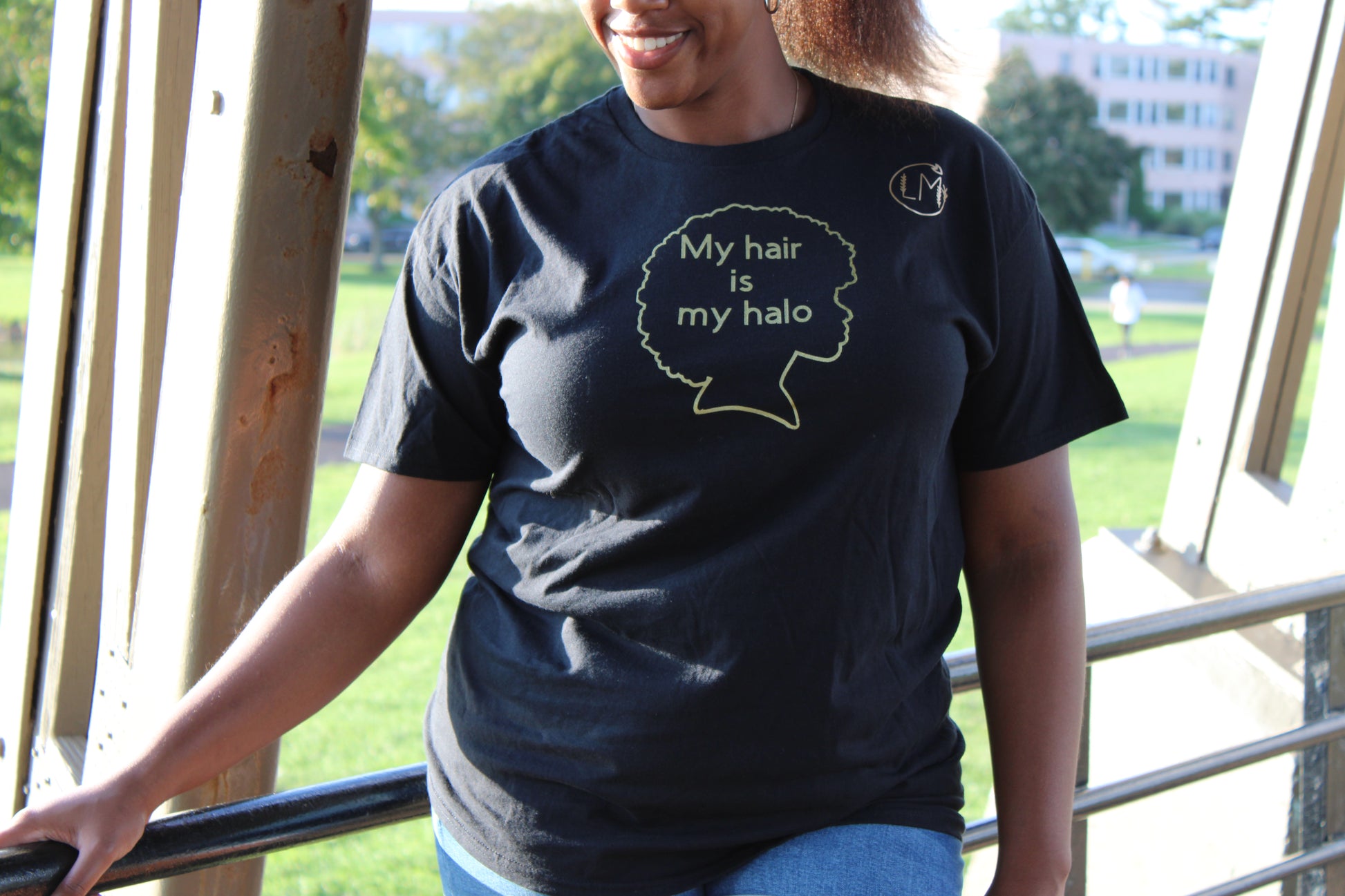 Introducing our "My Hair is My Halo" T-shirt - a celestial embrace for your crown of glory! This T-shirt is more than just clothing; it's a declaration of self-love and empowerment.